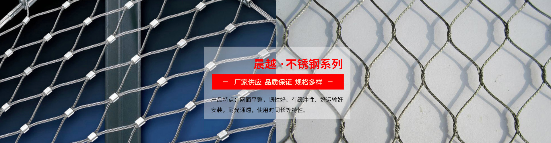 主要產品有:護欄網系列:雙邊護欄網、公路護欄網、基坑圍欄、電梯防護門、球場圍欄、養殖圍欄 、荷蘭網。網片系列:建筑網片、鋼絲網片、鍍鋅網片、浸塑網片、不銹鋼網片、磚帶網片、煤礦支護網片、苗圃網片、鋼筋網片。不銹鋼絲繩網:不銹鋼繩網、不銹鋼卡扣繩網、動物籠舍繩網、鳥籠舍圍網、植物攀爬網、橋梁防護繩網、室內裝飾繩網、樓梯扶手防護繩網、馬戲團鋼絲繩網、鋁扣繩網、鋼絲繩網兜。電焊石籠網、及防爆墻等四大系列,上千種規格型號。產品遠銷全國各地,并有著較好的市場聲譽。工廠引進國內高性能、全自動織網機,針對一些客商定制的特殊規格、型號,無...... 【更多內容】